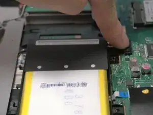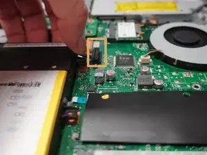 Подключите кабель аккумулятора к материнской плате, прижимая его вниз.