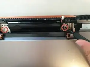 Снимите два винта 5.8 мм, фиксирующие экран и ноутбук у петли.
