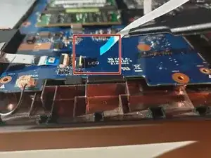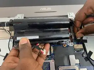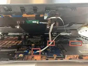 Используя антистатический инструмент, отсоедините все 3 ленточных кабеля, фиксирующие клавиатуру к ноутбуку.
