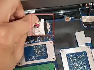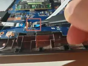 Отключите кабель аккумулятора от гнезда на материнской плате, аккуратно потянув его влево от гнезда.