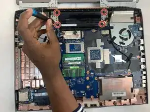 Снимите четыре винта 5.8 мм, крепящие аккумулятор к ноутбуку.