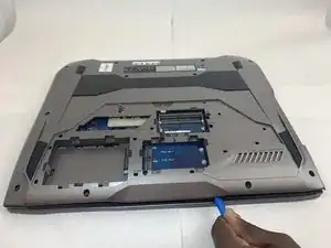 Используйте инструмент iFixit Opening Tool, чтобы поддеть заднюю панель и отделить её от корпуса ноутбука.