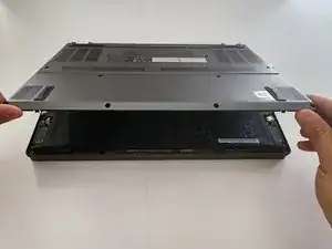 Переверните ноутбук так, чтобы крышка снизу была сверху.