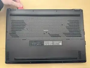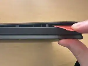 Вставьте пластиковую лопатку или инструмент в правый нижний угол ноутбука и аккуратно подденьте нижнюю крышку.