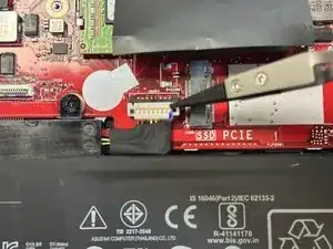 Отключите 8-контактный разъем аккумулятора, который фиксирует аккумулятор на материнской плате.