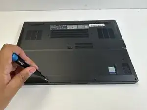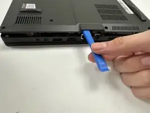Используйте пластиковый инструмент для открытия, чтобы отделить заднюю крышку от ноутбука.