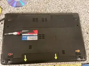 Переверните ноутбук вверх дном так, чтобы аккумулятор был обращён к вам.