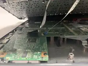 Отогните защитные планки на обоих разъемах шлейфа клавиатуры ZIF, затем аккуратно извлеките шлейфы из разъемов.