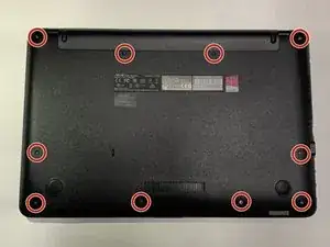 С помощью отвертки Phillips #00 открутите десять винтов длиной 1.2 мм, прикрепленных к задней крышке ноутбука.