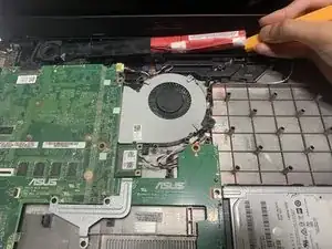 Рекомендуется использовать пластиковый инструмент для подъема, а не металлический, так как он может повредить внутренние компоненты ноутбука.