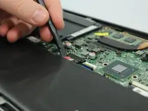 Отключите кабель аккумулятора от материнской платы.