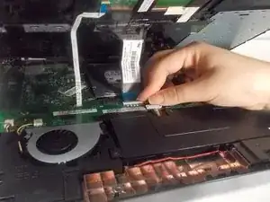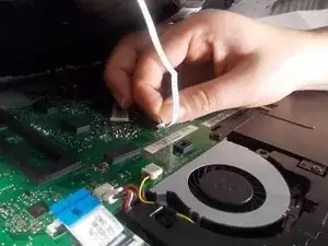 Снимите оба фрагмента ленты, соединяющие клавиатуру с материнской платой.