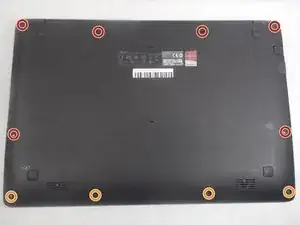 Используйте отвертку Phillips #0 (насадка PH0), чтобы снять шесть винтов длиной 11,0 мм, фиксирующих нижнюю крышку ноутбука.