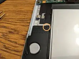 Будьте очень осторожны с пинцетом или другим инструментом для поддевания, так как под этой лентой защищён хрупкий шлейф дисплея.