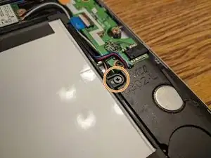 Ищите винты Phillips #0 слева и справа от аккумулятора, в небольших выступах, которыми аккумулятор крепится к динамикам с обеих сторон. Удалите эти винты.