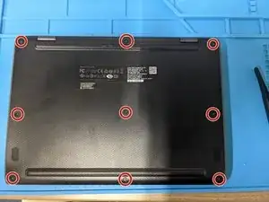 Уберите все 9 винтов на задней панели Chromebook с помощью отвертки Philips #0.