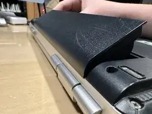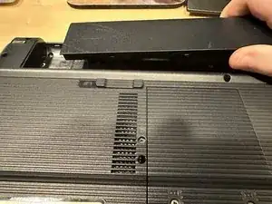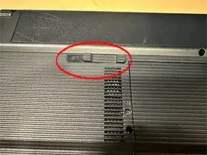 Найдите фиксатор-реечный выключатель извлечения аккумулятора на ноутбуке.