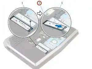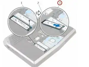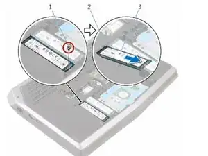 Удалите винт, который крепит твердотельный накопитель к основанию компьютера.