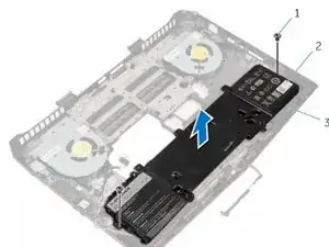 Удалите винты, которые крепят аккумулятор к основанию компьютера.