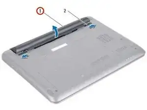 Переместите оба замка аккумулятора в положение разблокировки. Аккумулятор выскакивает из отсека для аккумулятора.