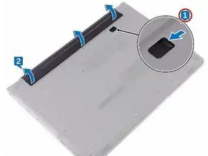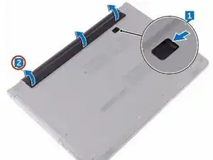 С помощью кончиков пальцев приподнимите аккумулятор под углом и удалите его с основания компьютера.