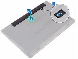 Сдвиньте защелку аккамулятора в разблокированное положение.