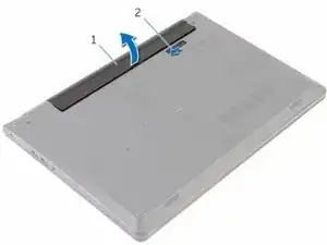 ПРИМЕЧАНИЕ: Защелка освобождения аккумулятора возвращается в заблокированное положение, если аккумулятор установлен правильно.