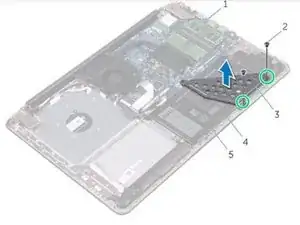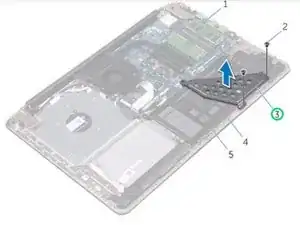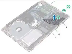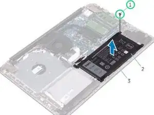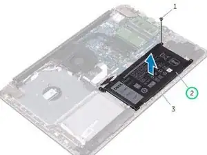 Уберите винты, которые фиксируют крепление аккумулятора к системной плате, подставке для рук и сборке клавиатуры.