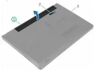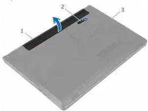 С помощью кончиков пальцев поднимите аккумулятор под углом и снимите его с основания компьютера.