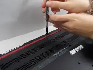 Выньте аккумулятор из ноутбука, поддев его и оттянув от корпуса. Если удалить его трудно, можно также использовать пластиковый инструмент для раскрытия.