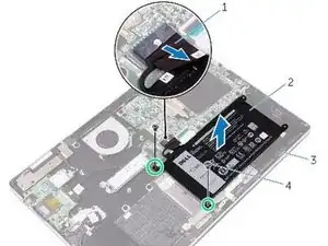 Удалите винты, которые крепят аккумулятор к элементу под ладонью.