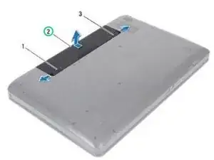 Сдвиньте защелку аккумулятора в положение разблокировки.