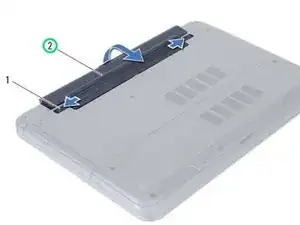 Переместите защелки аккумулятора с каждого конца отсека для аккумулятора в положение разблокировки. Вы услышите щелчок, когда аккумулятор будет разблокирован.