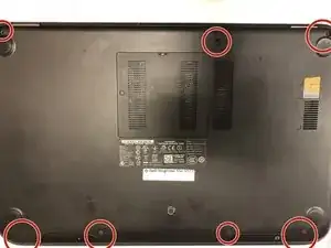 Удалите все резиновые заглушки и винты с задней панели ноутбука