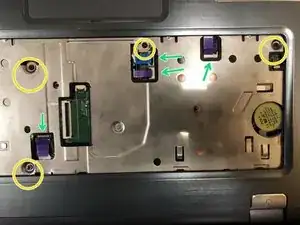 Выкрутите 4 винта на металлической раме (жёлтые кружки)