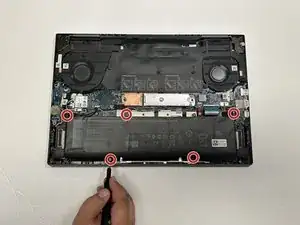 Используйте отвертку Phillips #00 для удаления пяти винтов, удерживающих аккумулятор в ноутбуке.