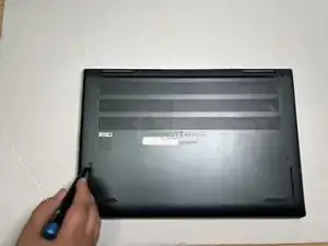 Используйте открывающее устройство между швами верхнего и нижнего корпуса, чтобы приподнять заднюю крышку ноутбука.