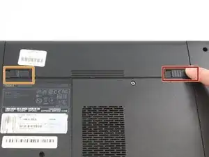 Сдвиньте оба замка — левый и правый, к центру аккумулятора.