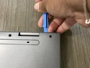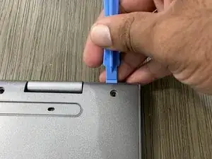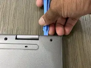 Вставьте лопатку в зазор между нижней крышкой и рамой. Используйте её как клин и аккуратно проходите по периметру. Это отщёлкнёт нижнюю крышку ноутбука.
