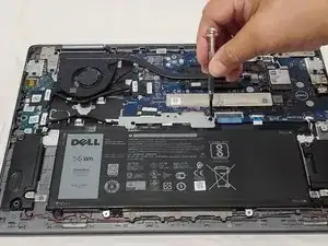 Используя отвертку Phillips #0, удалите четыре винта 3 мм, удерживающих аккумулятор на материнской плате.
