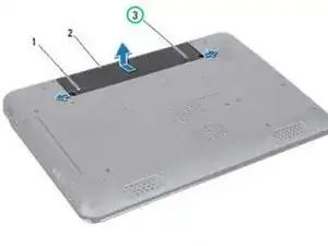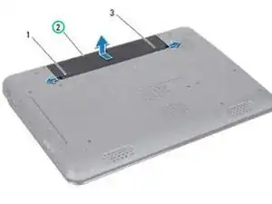 Сдвиньте защёлку для освобождения аккумулятора в сторону.