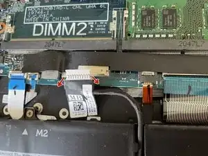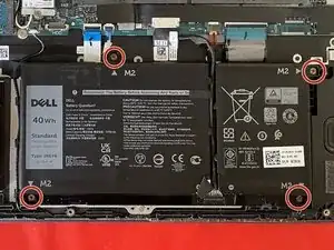 Найдите четыре винта, которые удерживают аккумулятор на месте. Они помечены M2 и стрелками. Открутите их все.