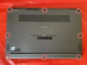 Переверните ваш Dell Latitude так, чтобы вы видели 8 отверстий для винтов, и открутите их как можно дальше.