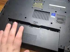 Освободите зажим на нижней стороне, удерживающий аккумулятор на месте.