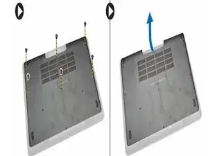 -Снимите боковые панели на задней стороне компьютера, чтобы снять крышку аккумулятора.