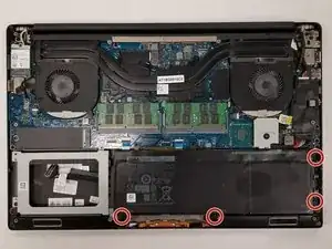 Удалите четыре винта JIS #0 длиной 4.0 мм вокруг аккумулятора.