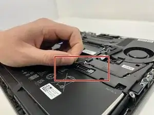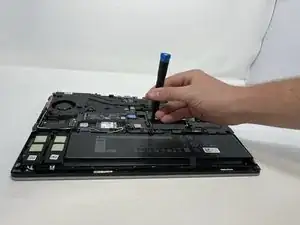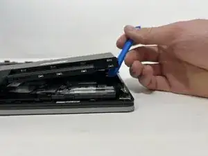 Используйте пальцы или пластиковый инструмент для вскрытия, чтобы приподнять аккумулятор и извлечь его из ноутбука.