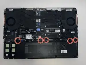 Отвинтите и извлеките пять винтов 2 мм, которые крепят аккумулятор.