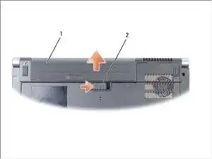 Переместите защелку для освобождения аккумулятора до щелчка.