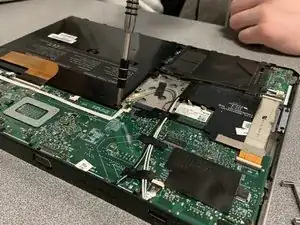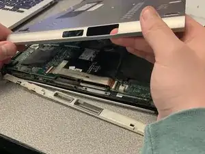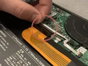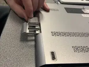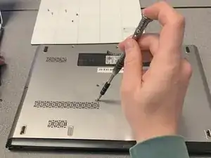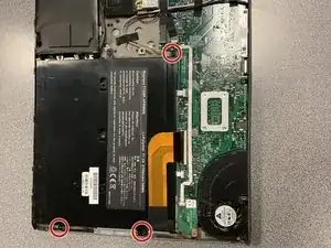 Удалите два винта Phillips #1 длиной 5,0 мм на задней стороне ноутбука.